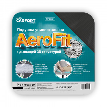 Подушка универсальная Carfort AeroFit с дышащей 3D структурой. Одновременно достаточно мягкая для комфортной посадки и жестко держащая форму. 3D структура делает подушку проницаемой для воздуха и влаги. Комфорт для кожи обеспечен. Жесткий объемный каркас намного полезнее для позвоночника, по сравнению с обычными подушками