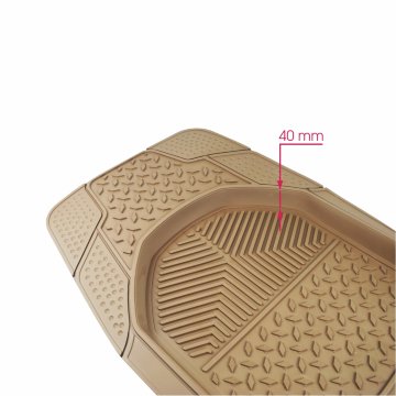 Комплект ковриков можно использовать в большинстве современных легковых автомобилей. Широкая универсальность обусловлена специальным рисунком ковриков. На их поверхности имеется разветвленная сеть насечек для разреза, которая позволяет придать коврикам форму, точно соответствующую днищу салона автомобиля.