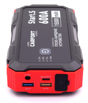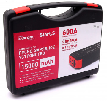 Компактное пуско-зарядное устройство Carfort Start.S CFS300 предназначено для запуска бензиновых двигателей объёмом до 5 л и дизельных до 3,5 л. Обеспечивает до 15 запусков двигателя без дозарядки устройства. Также служит источником питания (пауэр-банком) для мобильных устройств - телефонов и ноутбуков различного напряжения. Carfort Start.S CFS300 поставляется в удобном пластиковом кейсе с ручкой. Теперь никакие переходники и провода не потеряются.
